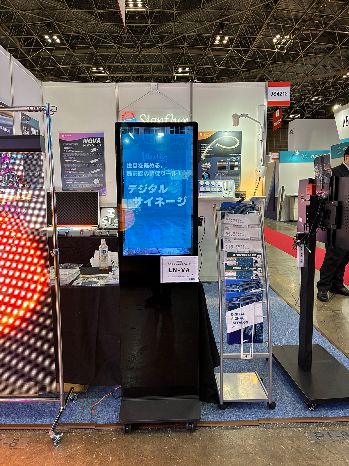 メディアプレイヤーを屋内用の自立スタンド縦型ディスプレイです。Wi-Fiに接続してWebサイトを表示したり、スマートフォン用の対応しているアプリを使うこともできます。またUSBを挿せば自動的に再生するプレイヤー機能も搭載しています。外部機器はHDMI入力にて使用できます。USBポートにカメラ等の各種ハードウェアを取り付けて使用することも可能ですので、アイディア次第で様々な応用が可能です。