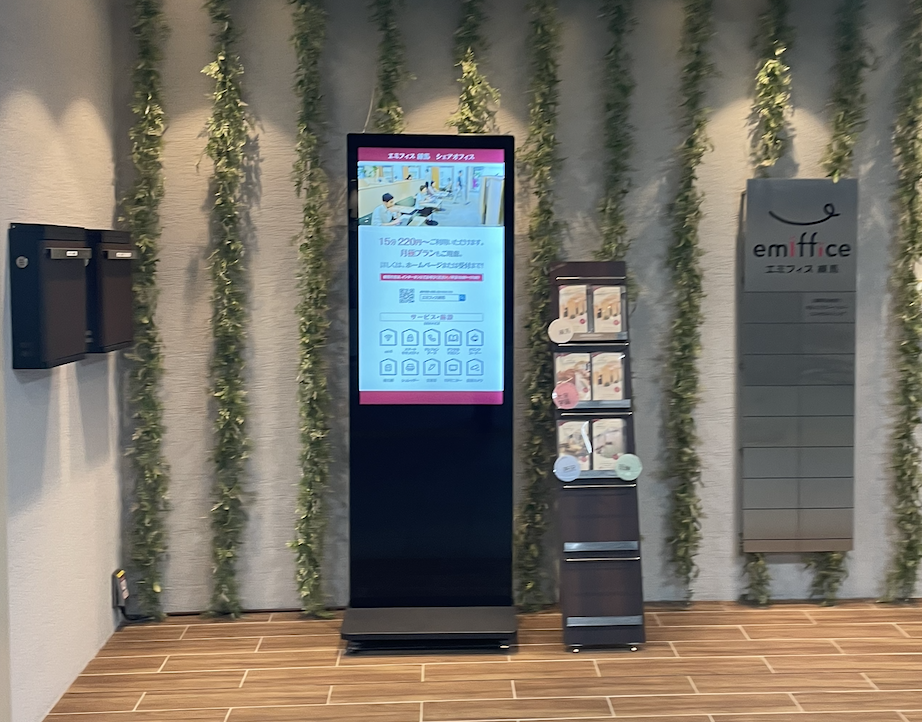 電源を入れるだけで案内・販促・誘導を即座に実現。店舗や施設の入口、受付、通路など、場所を選ばず設置いただけます。
