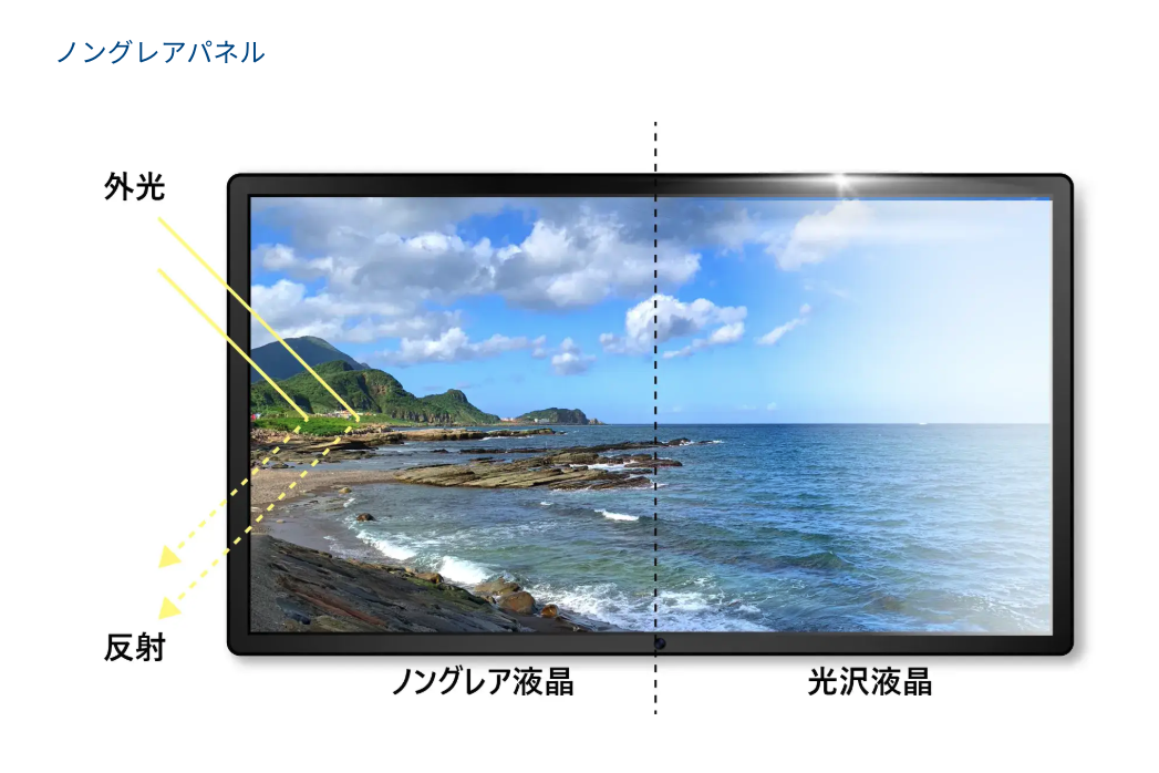 映り込みを抑制し、文字などに対する高い視認性を有したノングレア(非光沢)パネルを採用。