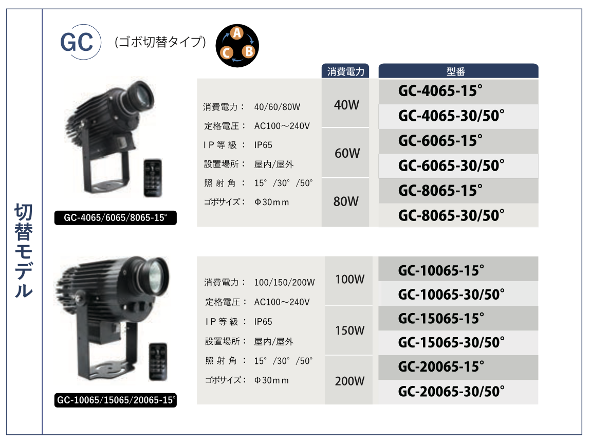 モデルタイプ:GC(ゴボ切替タイプ)
