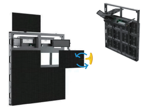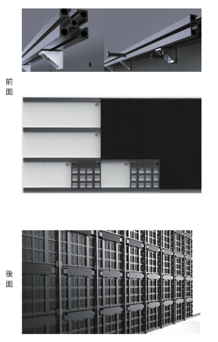 モジュールを組み合わせる構造のため、設置スペースや用途に合わせた自由なサイズ構成・形状が可能です。イベント会場、商業施設、店舗のファサードなど、圧倒的な視認性と訴求力で、記憶に残る映像演出を実現します。